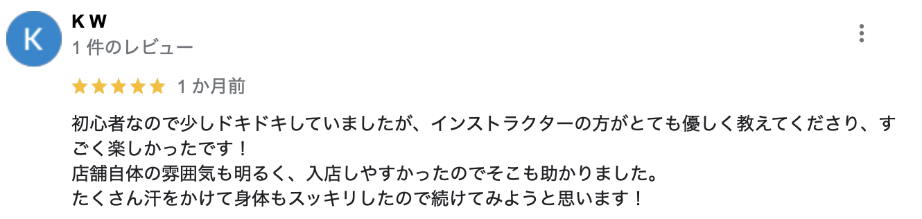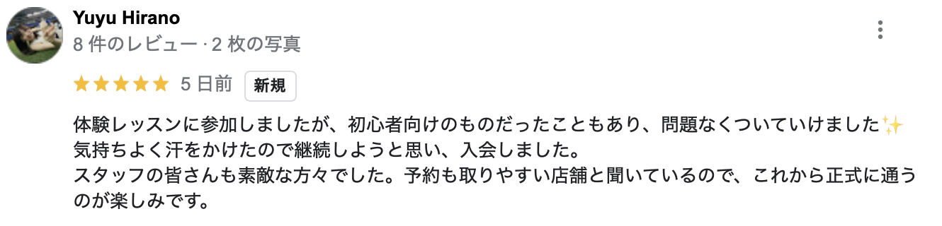 ※手ぶら体験レッスンの場合「お水1リットル・シャワー時のバスタオル・汗拭き用フェイスタオル」を店舗にて無料でレンタルできます。