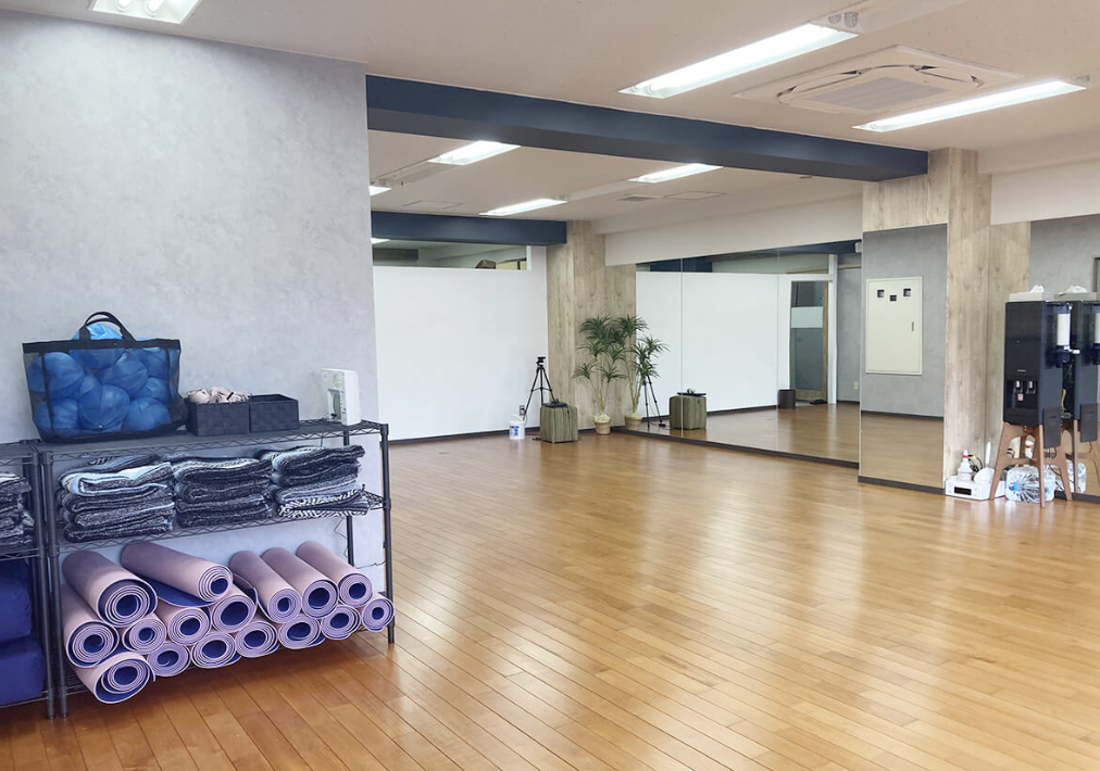 ・動きやすい服装(Tシャツ、ハーフパンツ、スパッツなど。靴・ソックスは不要)や汗拭きタオルを持参してスタジオへ。